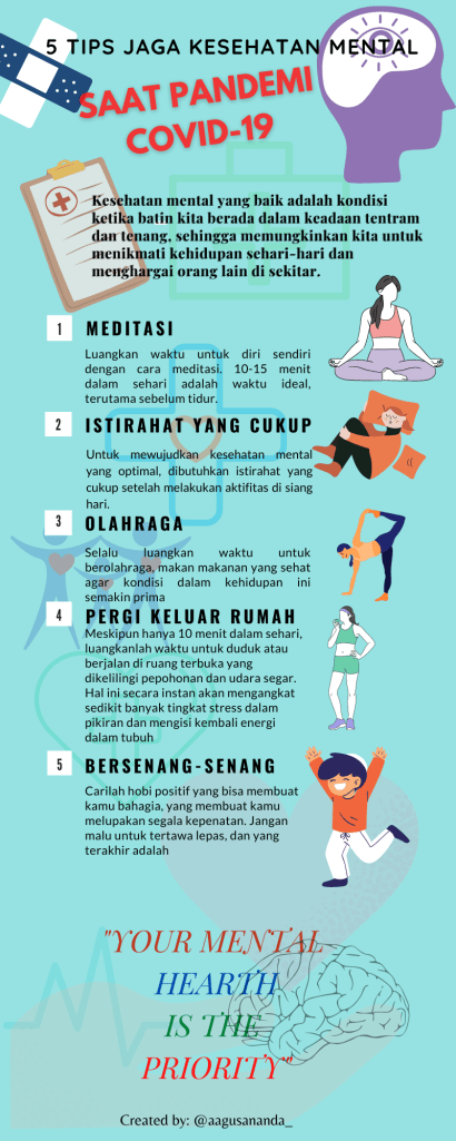 Poster Infografis tentang Tips Menjaga Kesehatan Mental Pada Masa Pandemi Covid-19